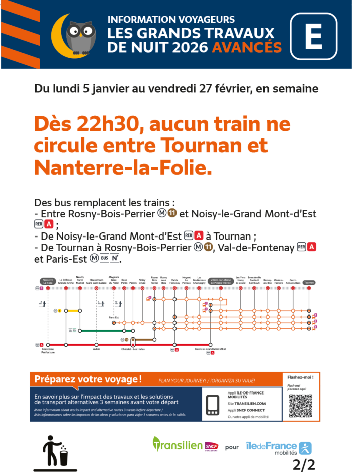 🚧 Déviation correspondance gare de Nanterre-la-Folie RER E à Nanterre Préfecture RER A