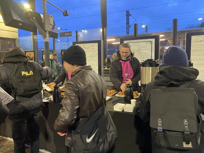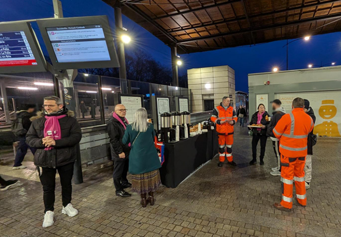 Jeudi 19 février au matin, les équipes du RER E de Transilien SNCF Voyageurs et de SNCF Réseau étaient en gare d’Émerainville – Pontault Combault avec les voyageurs de la ligne.